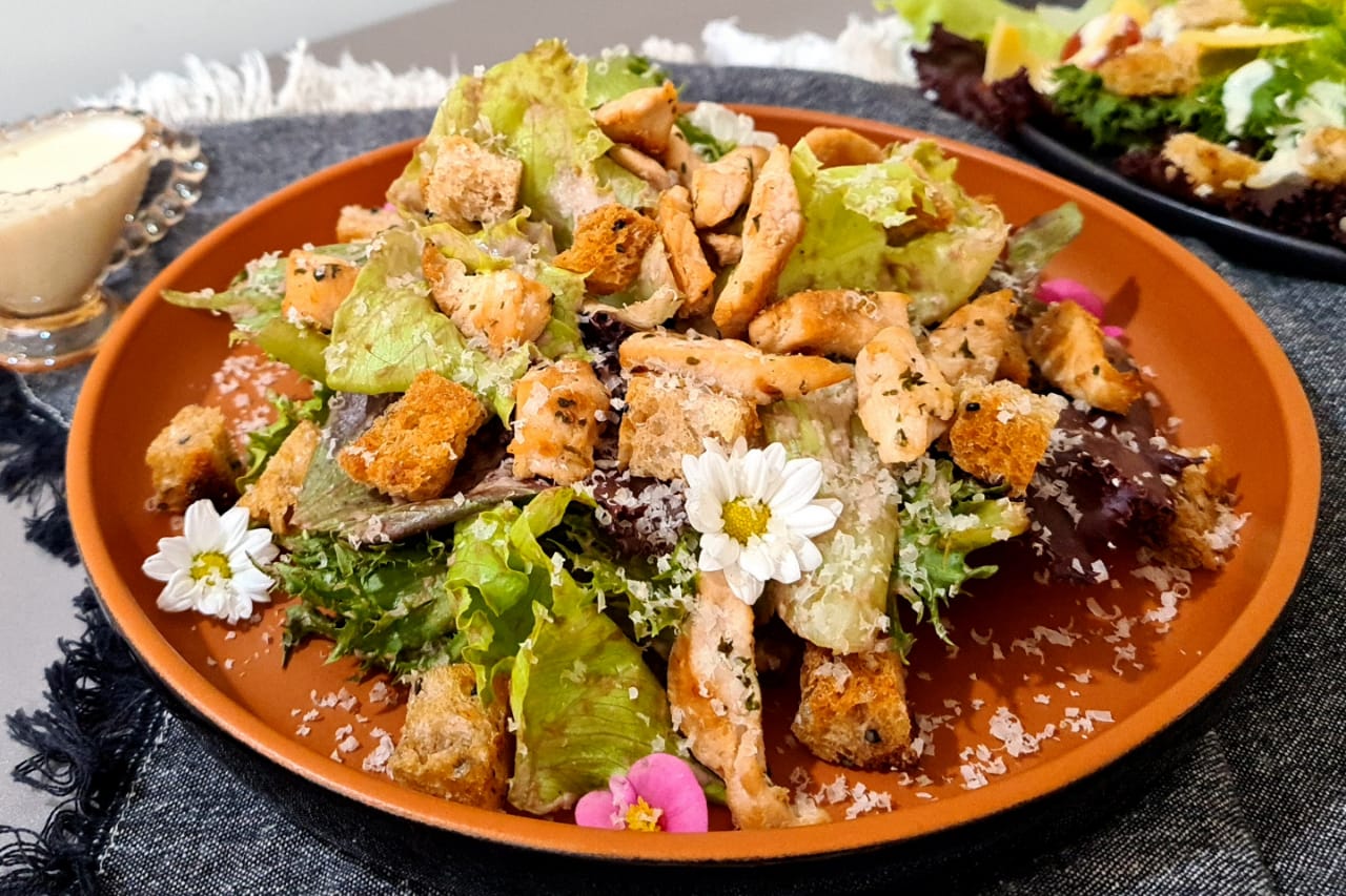 Para o molho de iogurte misture ao iogurte o molho inglês, a mostarda, suco de limão, o azeite de oliva, e tempere com sal e pimenta à gosto. Misturar bem e acrescentar o queijo ralado. Manter na geladeira por até 5 dias. Para o molho de semente de girassol bata todos os ingredientes no liquidificador ou processador, até ficar com uma consistência bem lisa.